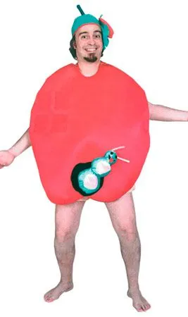 Ein Apfel mit Wurm! Mit diesem originellen Apfel-Kostüm für Erwachsene werden Sie der lustige Mittelpunkt jedes Themenfests oder jeder Karnevalparty. Eine ideale Verkleidung, um die Kostüme von Adam und Eva zu ergänzen.
