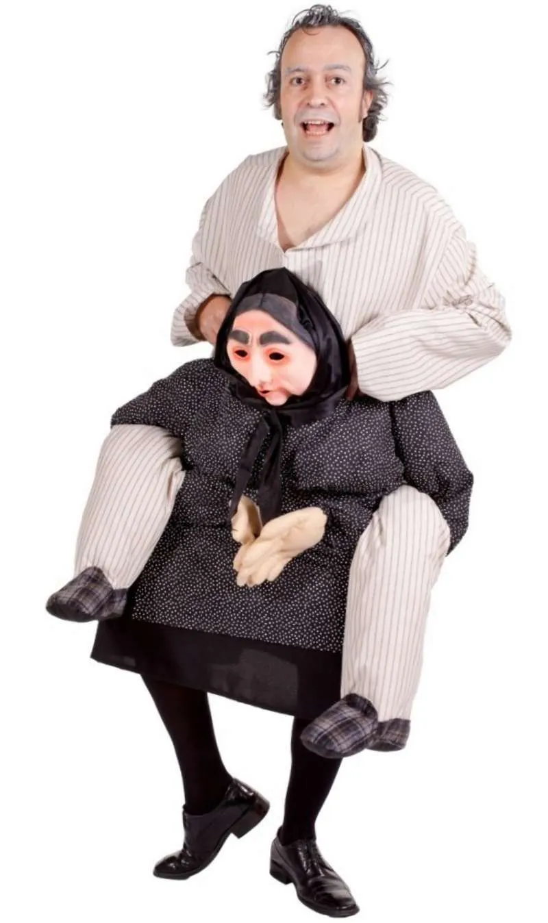 Sie muss aber auch über alles meckern! Mit diesem originellen, nörgelnden Oma Kostüm für Erwachsene werden Sie huckepack auf Omas Rücken einen Riesenspaß auf Themen und Karnevalspartys haben.