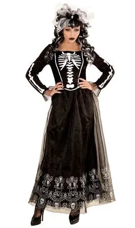 Elegante Knochen! Dieses originelle Skeletria-Kostüm für Damen ist perfekt, um Sie in eine elegante Catrina an Halloween zu verwandeln. Zeigen Sie Ihre Eleganz als Skelettdame in der Nacht der Toten, im Karneval oder auf Halloweenpartys.