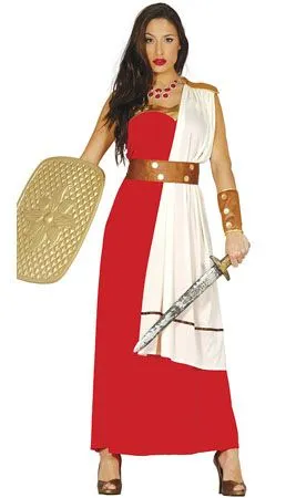 Kriegerin aus Rom! Diese spartanische Römerin Kostüm für Damen, ist die perfekte Wahl für Frauen, die als Heldinnen auf römische Feste oder Karneval gehen möchten. Dieses Kleid mit Umhang, wenn Du es mit einem Schild und Schwert ergänzt, wirst Du einen echten kriegerischen Look erreichen.