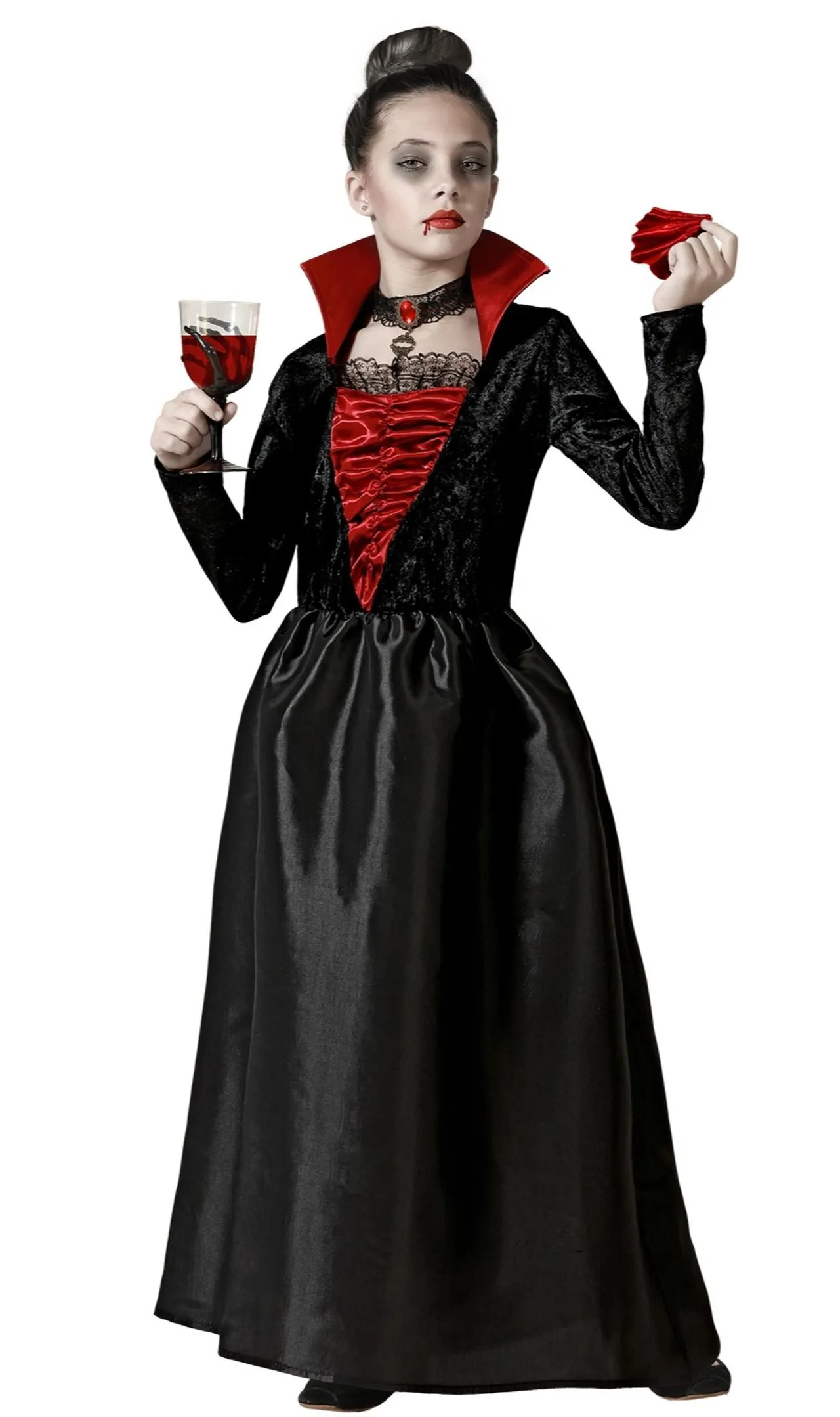 Vampirin Bianca Kostüm für Mädchen für Halloween und Fasching. Reise nach Siebenbürgen-Draculas Transsilvanien und besuche Draculas Schloss, wo du für immer zwischen Särgen und dem Jenseits leben wirst. Wähle für Halloween-Partys, das Vampir- und Vampirin-Kostüm, ein Klassiker, der immer triumphiert.